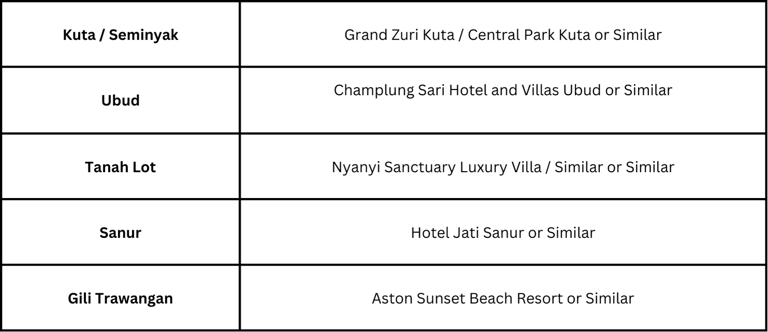 Overnight stay in a 4-star hotel in Kuta/Seminyak.